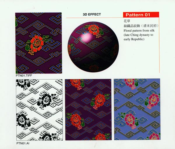 | 01 | 花草 | 清末民初 | 絲織品紋飾 | Floral pattern from silk | late Ching dynasty to early Republic |