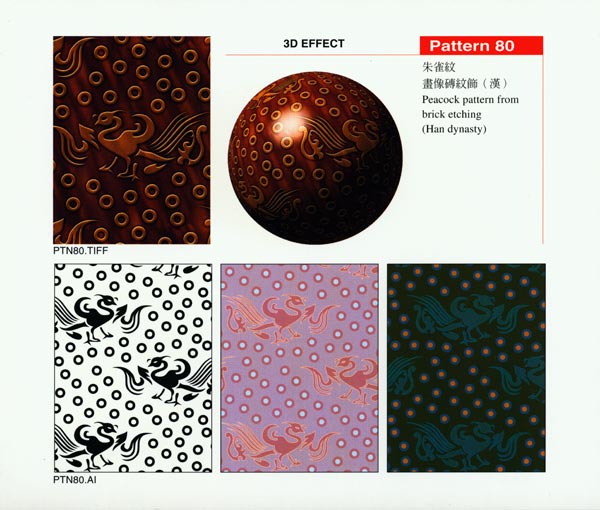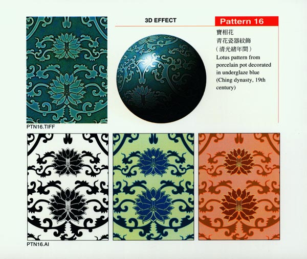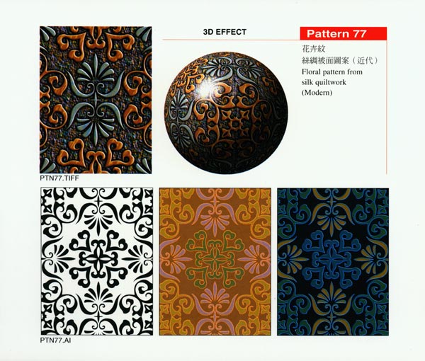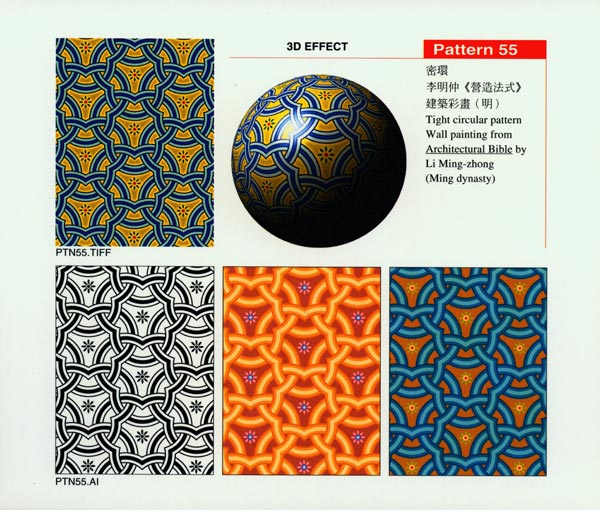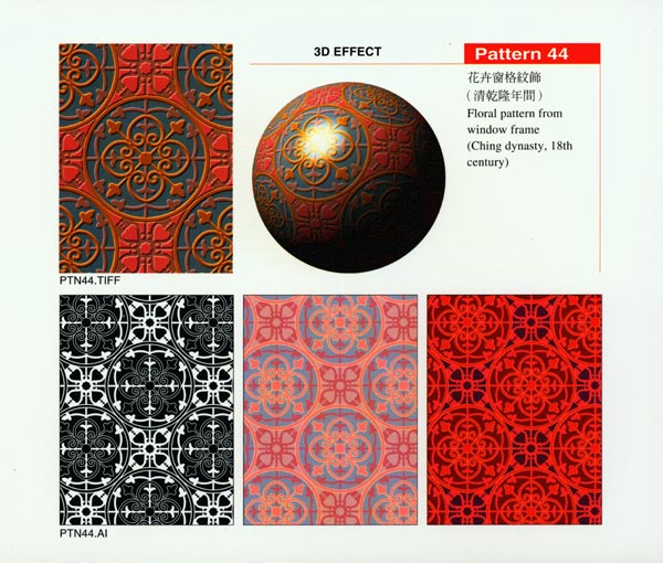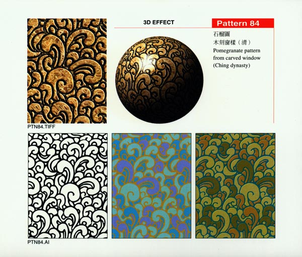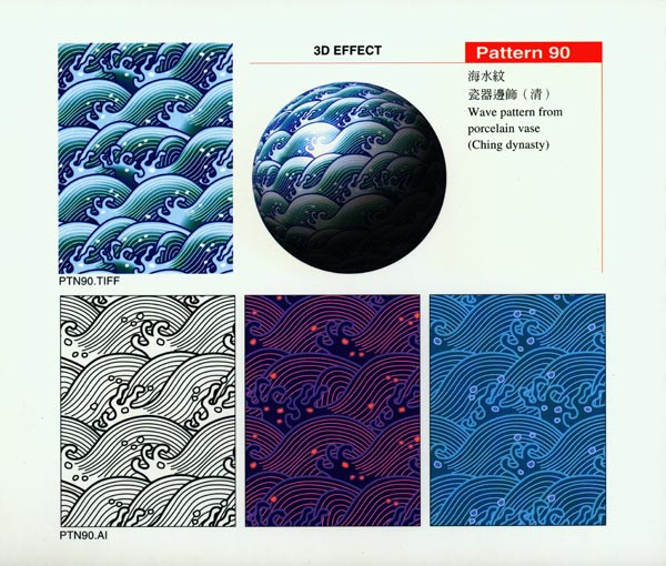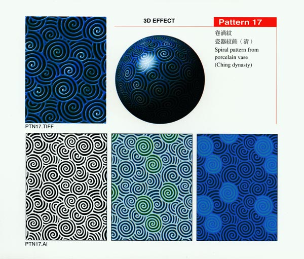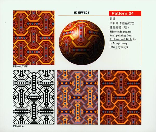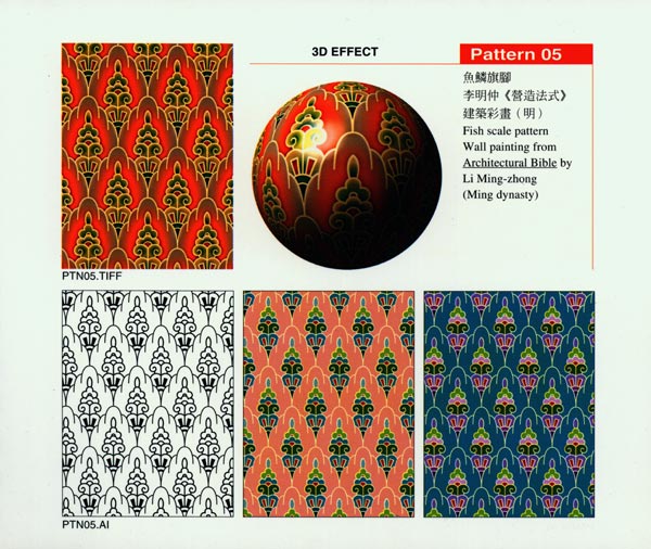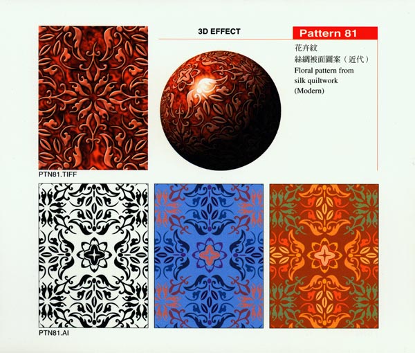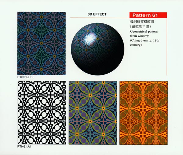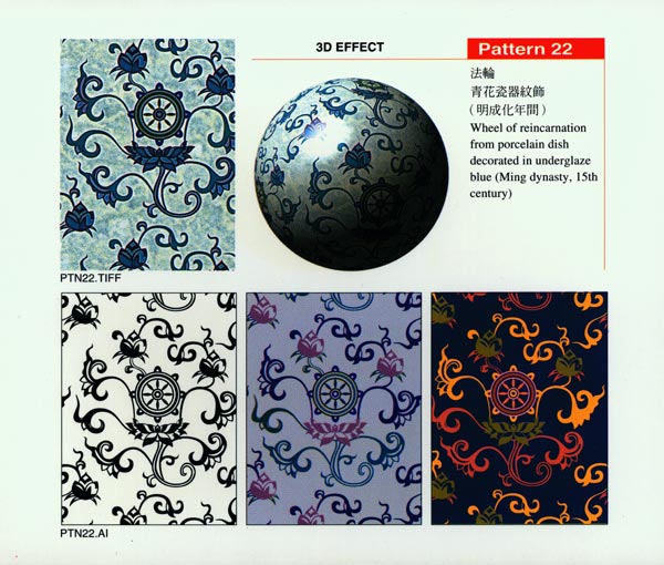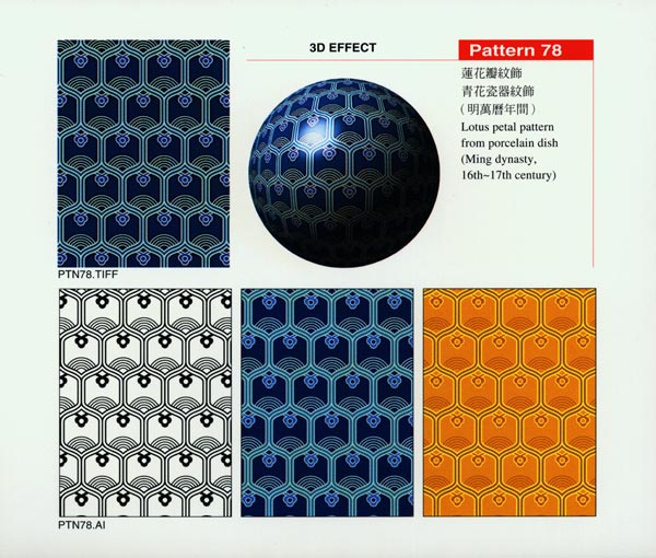 (紋飾內容所呈現的是手冊內頁,每一頁中3D圓球部份,僅代表該紋飾可當成材質被拼貼,3D圓球並不包含在圖庫之中)
