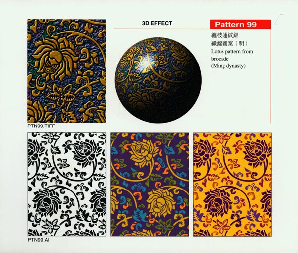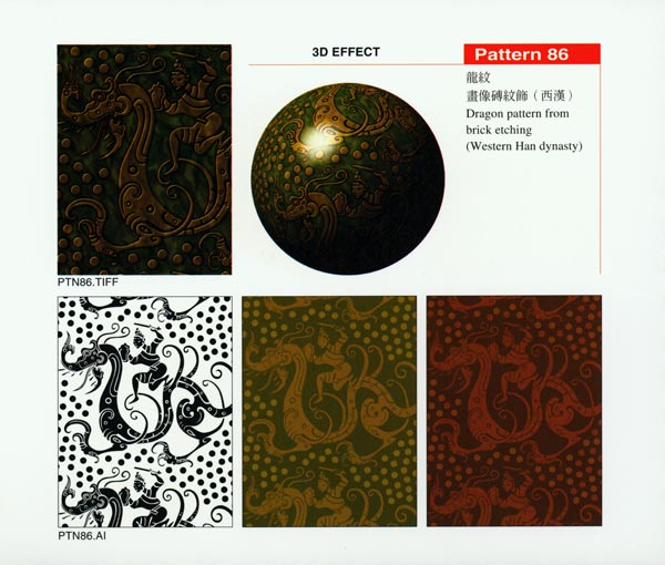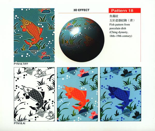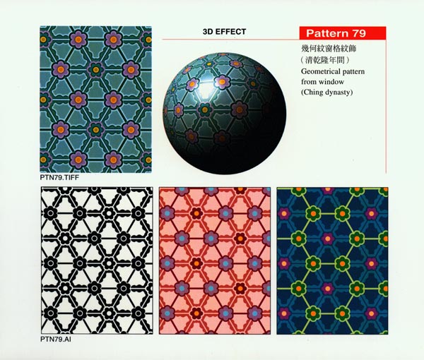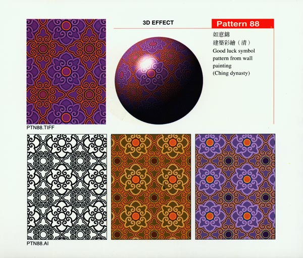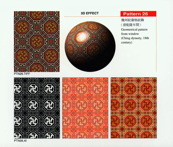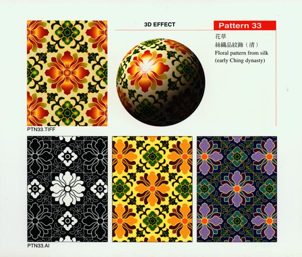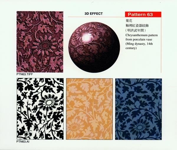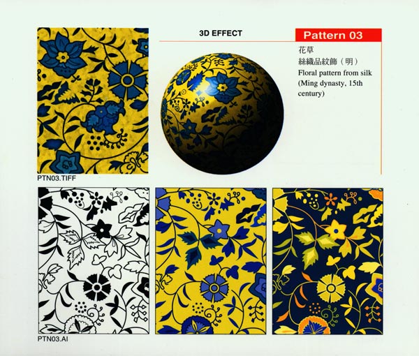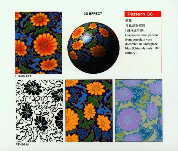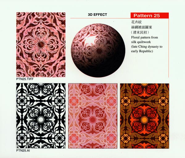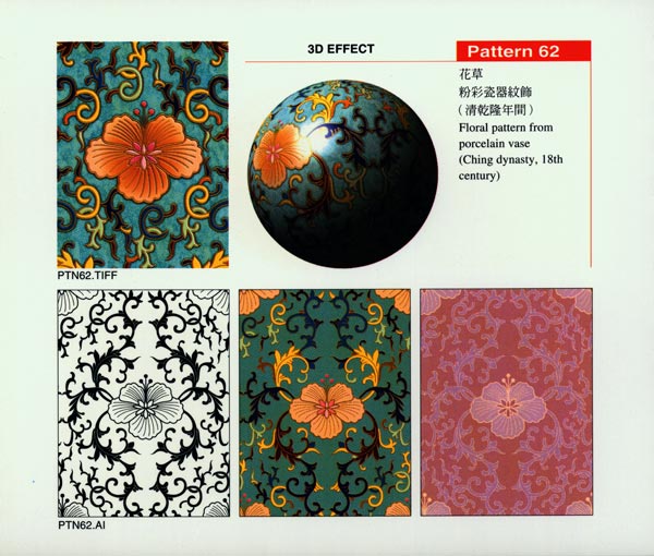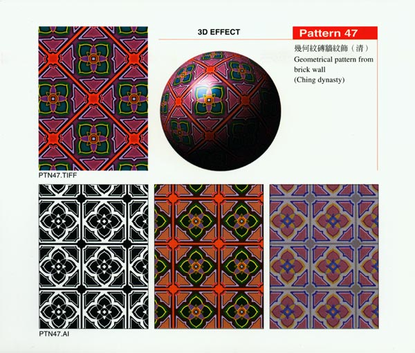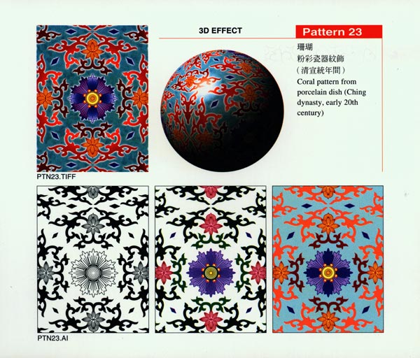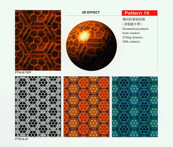 (紋飾內容所呈現的是手冊內頁,每一頁中3D圓球部份,僅代表該紋飾可當成材質被拼貼,3D圓球並不包含在圖庫之中)