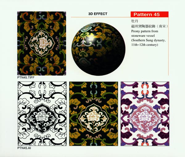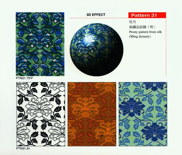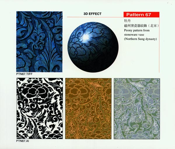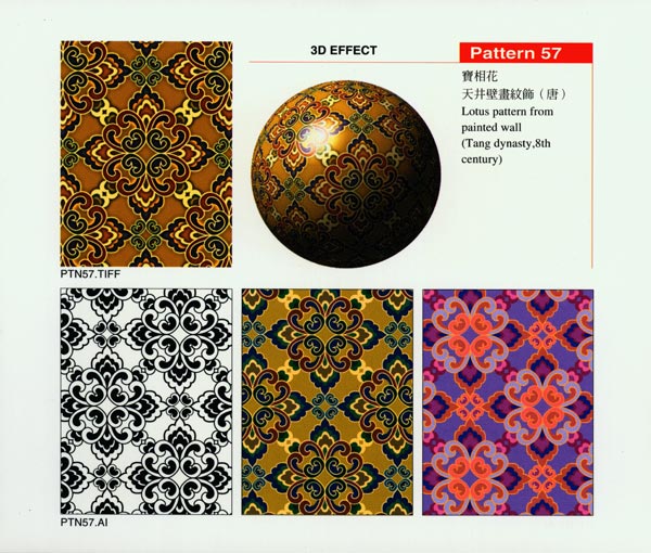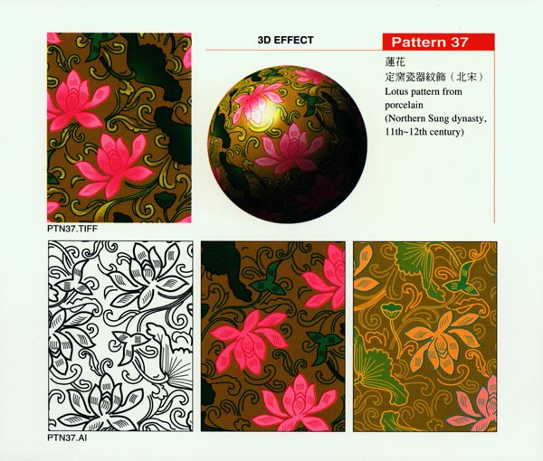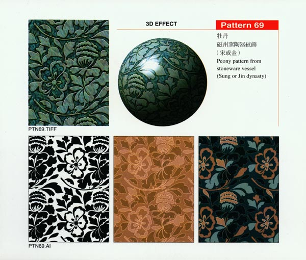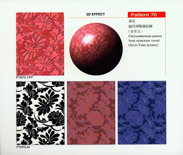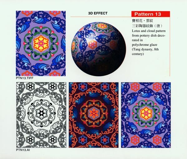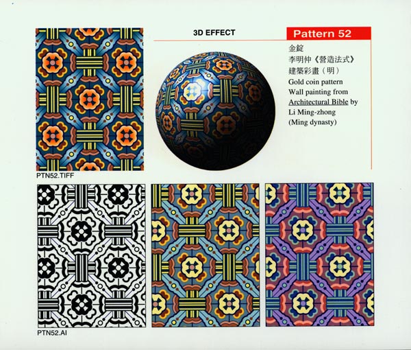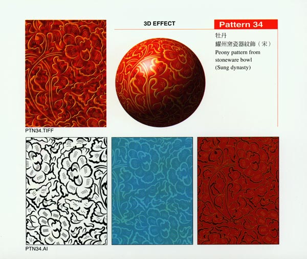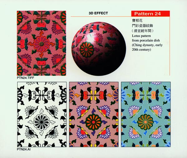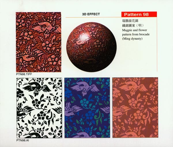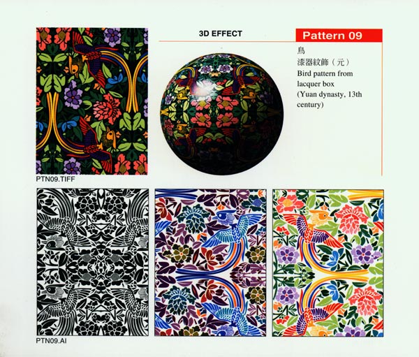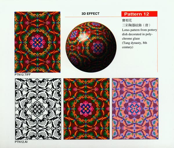 (紋飾內容所呈現的是手冊內頁,每一頁中3D圓球部份,僅代表該紋飾可當成材質被拼貼,3D圓球並不包含在圖庫之中)