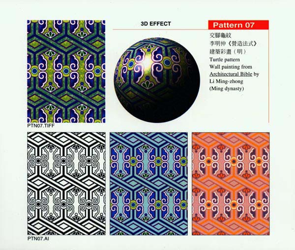 | 07 | 交腳龜紋 | 明 | 李明仲《營造法式》建築彩畫 | Turtle pattern Wall painting from Architectural Bible by Li Ming-zhong | Ming dynasty |