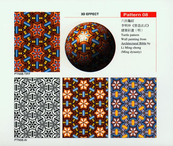 | 08 | 六出龜紋 | 明 | 李明仲《營造法式》建築彩畫 | Turtle pattern Wall painting from Architectural Bible by Li Ming-zhong | Ming dynasty |