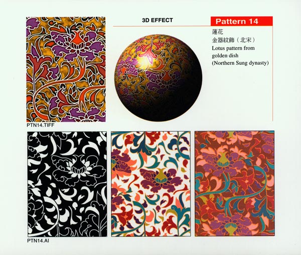 | 14 | 蓮花 | 北宋 | 金器紋飾 | Lotus pattern from golden dish | Northern Sung dynasty |