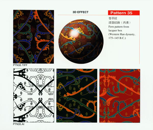 | 35 | 卷草紋 | 西漢 | 漆器紋飾 | Fern pattern from lacquer box | Western Han dynasty,175~145 B.C. |