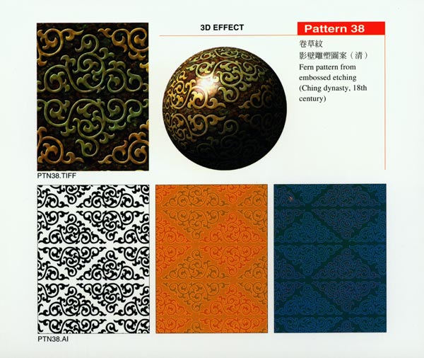 | 38 | 卷草紋 | 清 | 影壁雕塑圖案 | Fern pattern from embossed etching | Ching dynasty,18th century |