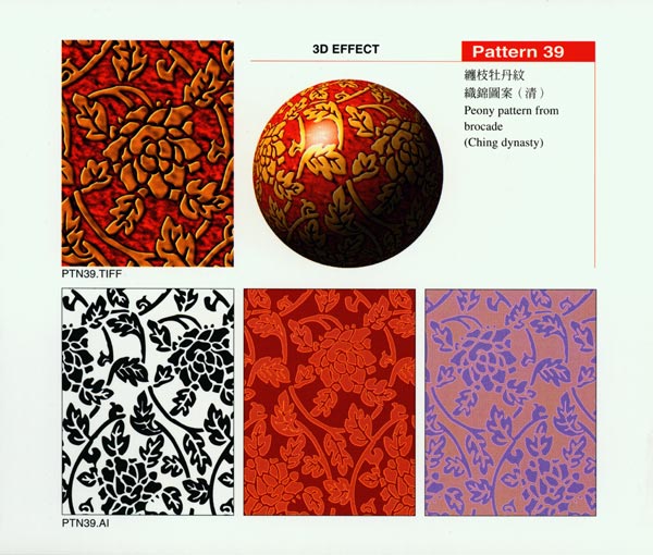 | 39 | 纏枝牡丹紋 | 清 | 織錦圖案 | Peony pattern from brocade | Ching dynasty |