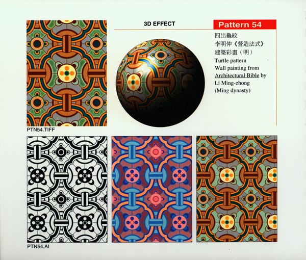 | 54 | 四出龜紋 | 明 | 李明仲《營造法式》建築彩畫 | Turtle pattern Wall painting from Architectural Bible by Li Ming-zhong | Ming dynasty |