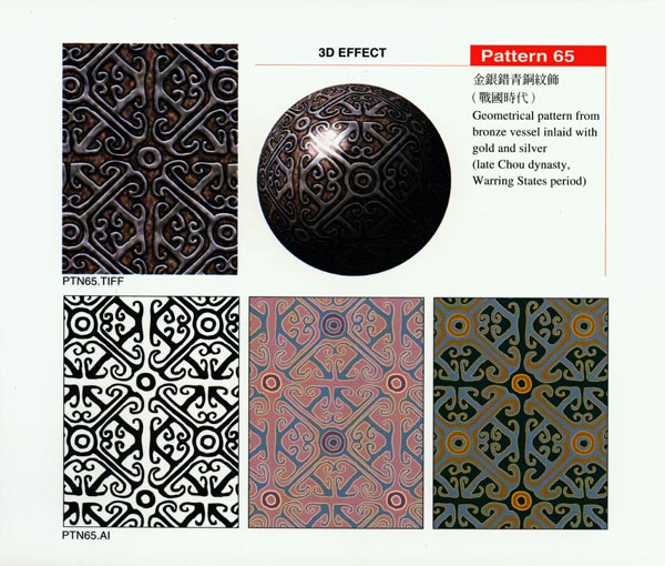 | 65 | 青銅紋 | 戰國時代 | 金銀錯青銅紋飾 | Geometrical pattern from bronze vessel inlaid with gold and silver | late Chou dynasty,Warring States period |