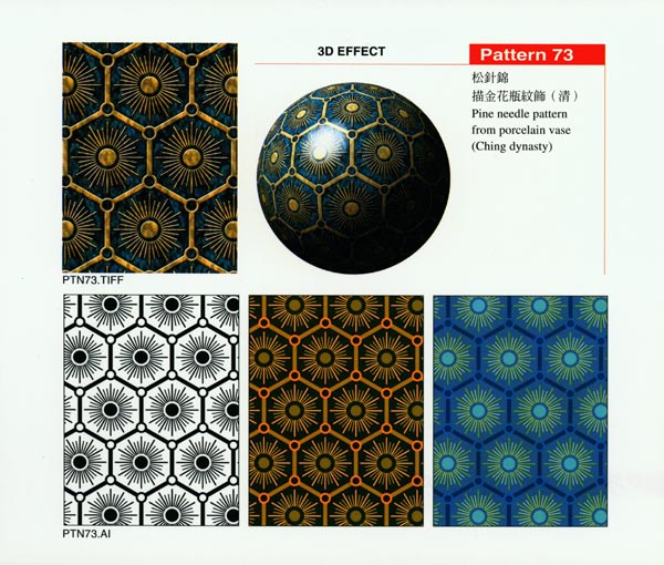 | 73 | 松針錦 | 清 | 描金花瓶紋飾 | Pine needle pattern from porcelain vase | Ching dynasty |